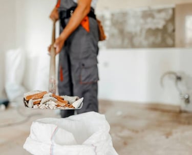 Het verwijderen van bouwstof en vuil tijdens of na renovatie- en bouwprojecten.
